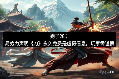 狗子28:易势力声明《刀》永久免费是虚假信息,玩家需谨慎